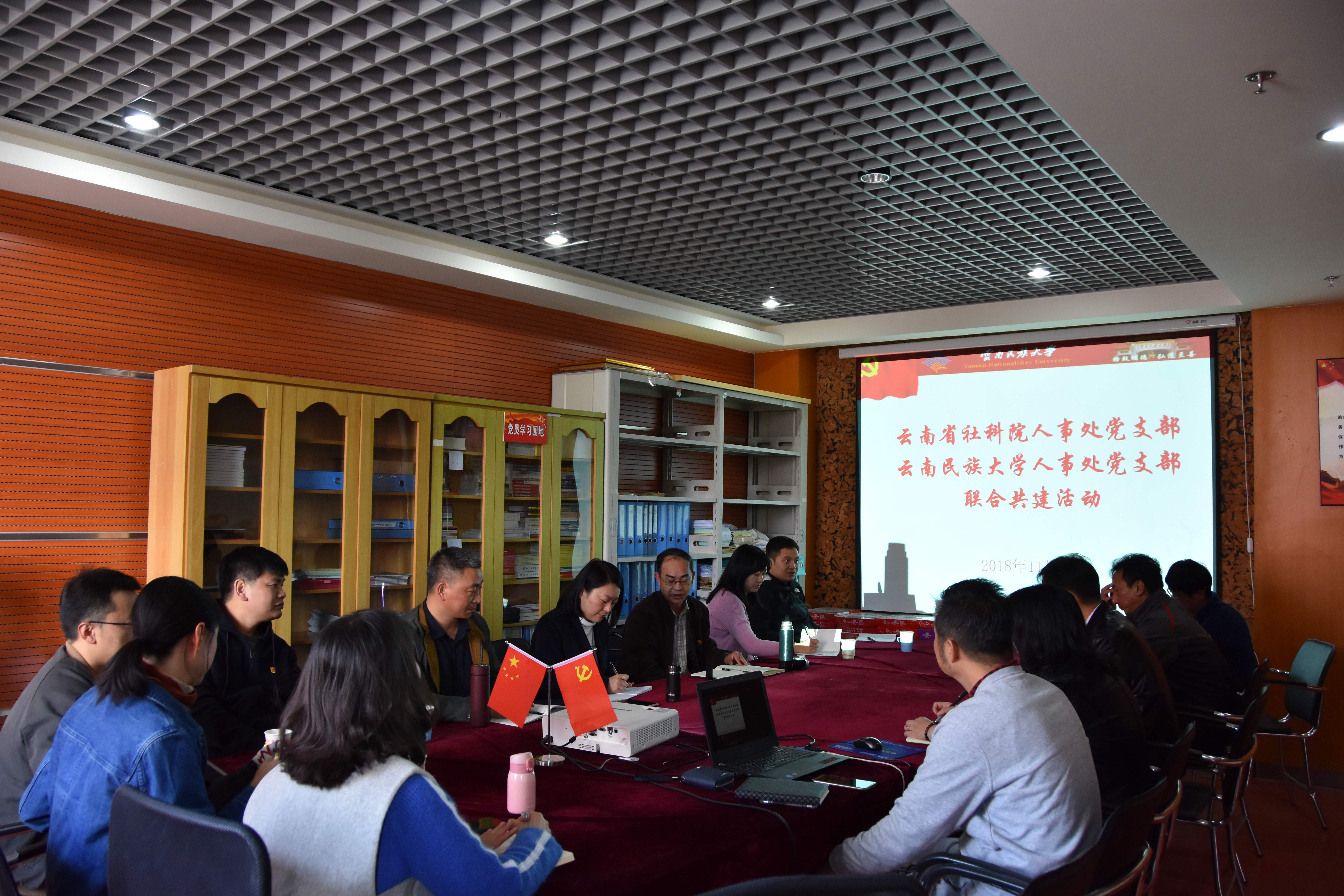 为认真贯彻学习党的十九大精神,全面落实从严管党治党,进一步牢固树立“四个意识”、坚定“四个自信”,切实做到党风廉政教育和党支部规范化建设“两手抓”,真正做到“自重、自省、自律、自警”,结合工作实际让党员同志接受反腐倡廉警示教育,激发爱岗敬业的工作热情。2018年11月7日(周三)上午,我院人事处全体党员同志走进云南民族大学,与云南民族大学人事处党支部共同携手开展了“党支部联合共建活动”。
