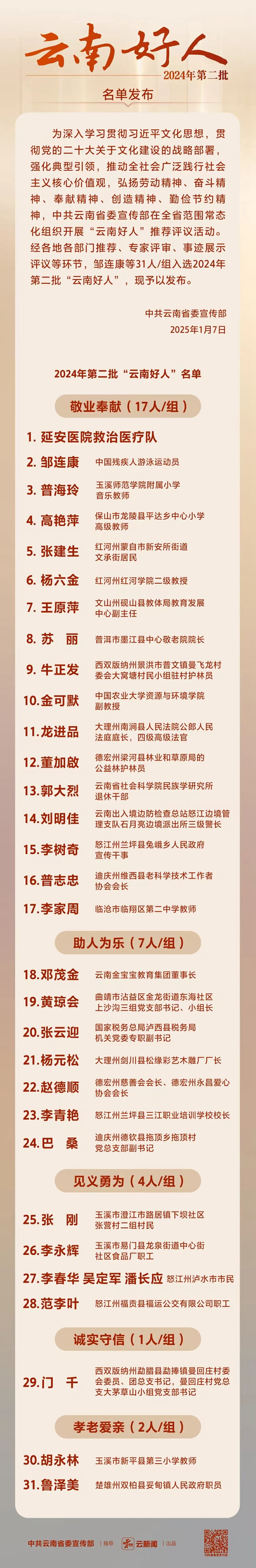 我院退休干部郭大烈同志入选2024年第二批“云南好人”