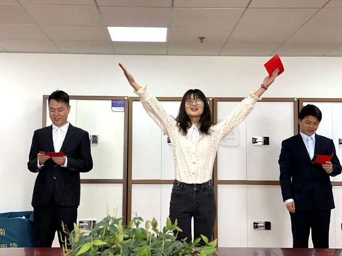 在本次活动中,宣讲人员以“三句半+表演”的方式紧扣“奋斗新时代、奋进新征程、担当新使命,沿着习近平总书记指引的方向奋勇前进,以优异的成绩迎接党的二十大胜利召开”主题,用饱满的精神姿态、精炼的文字语言、真切的爱党情怀生动阐释了中国共产党为什么“能”,中国特色社会主义为什么“好”,马克思主义为什么“行”,感染了在场的每位党员。