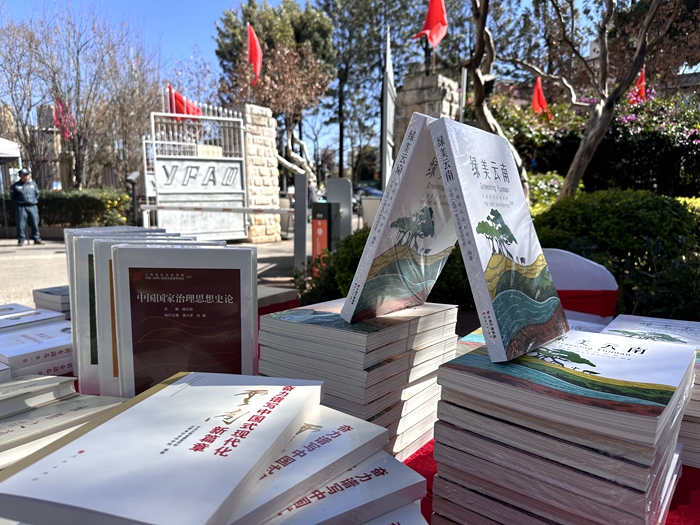 在省外办指导下,本次展出的书籍包括《习近平谈治国理政》(第一、第二、第三、第四卷)的多语种版本、《中国国家治理思想史论》《中国社会治理思想史论》《中国边疆治理思想史论》《中国生态思想史论》《致胜之道》《共同富裕》《天人合一》《奋力谱写中国式现代化云南新篇章》《世界花园彩云南》《绿美云南》《有一种叫云南的生活》等丛书,吸引各国驻昆明总领事和外籍人士驻足阅读。