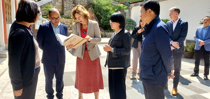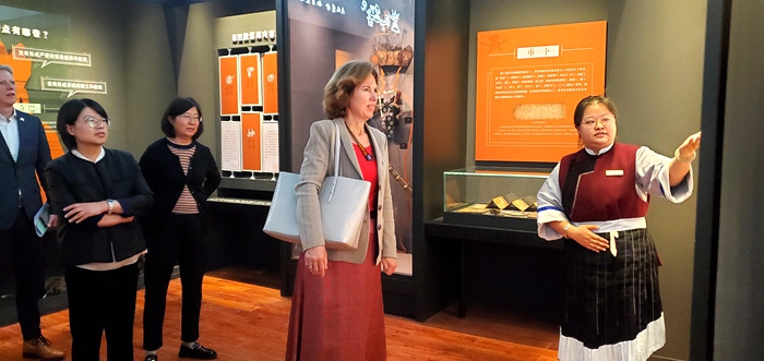吴若兰大使一行参观了文献馆各层展厅,深入细致地了解了东巴古籍文献作为纳西族百科全书的丰富内涵,大使不时地提出问题,研究院专家学者一一认真作答,氛围友好而热烈。