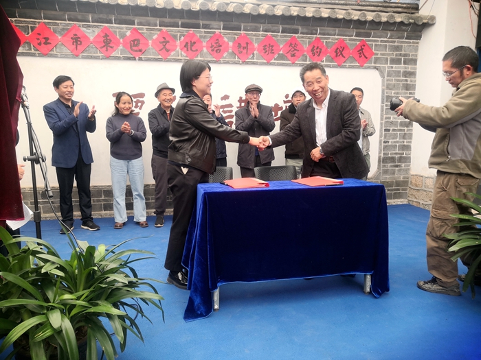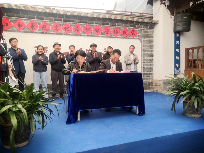 市东巴文化研究院院长和洁蕾与雪山书院院长和国相共同签署“丽江东巴文化培训班”办班协议
