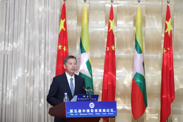 郭大进指出,中缅两国是山水相依的友好邻邦。在历史的长河中,双方始终相互尊重、相互支持,在政治互信、经济互利、文化互通等方面建立了广泛而坚实的合作关系。近年来,云南省深入推进习近平主席历史性访缅重要成果落地落实,深入推进中缅命运共同体及中缅经济走廊建设,不断深化滇缅经贸合作,各项工作取得新的突破。新征程上,我们愿同缅方在共建“一带一路”框架下,发挥好中缅智库高端论坛等平台机制作用,在中缅经济走廊建设、维护边境和谐稳定、促进民间交流等方面加强合作,为促进双方关系更好发展作出新的贡献。