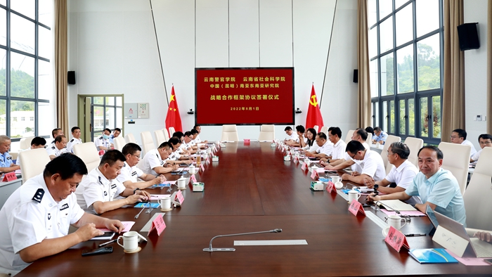 院党组成员、副院长陈光俊、侯胜;云南警官学院党委副书记、院长刘功华,党委委员、副院长孙学华、杜涛、张爱国,党委委员、政治部主任许云川出席签约仪式。