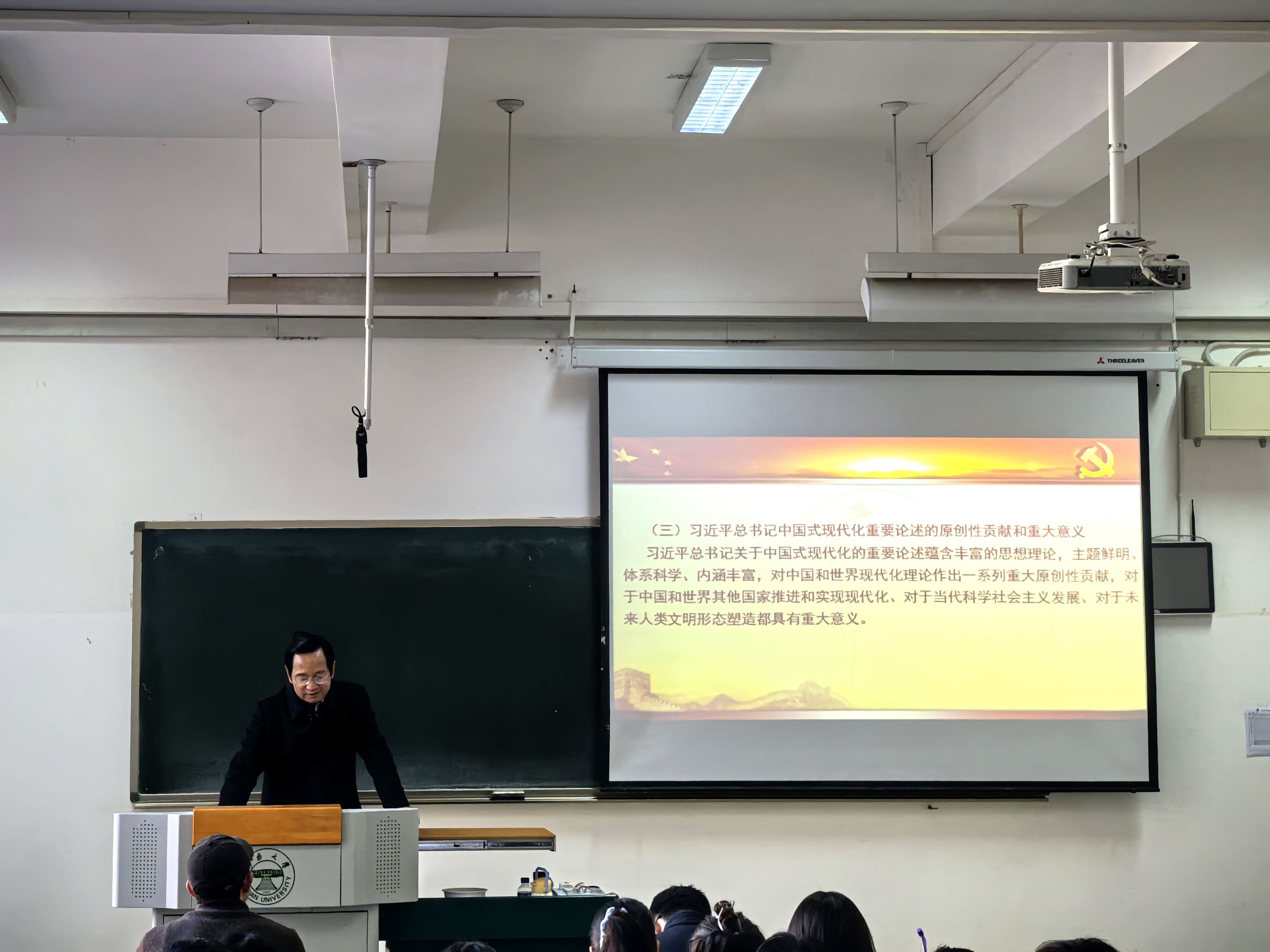 杨正权围绕奋力谱写中国式现代化的云南篇章,就深入学习领会习近平总书记关于中国式现代化的重要论述,结合云南实际,与广大师生交流云南在建设民族团结进步示范区、生态文明建设排头兵、面向南亚东南亚辐射中心中取得的积极成效。