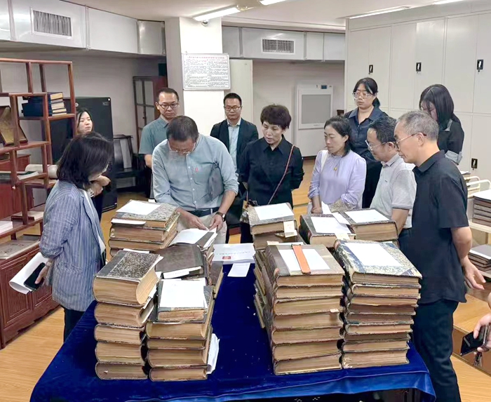 2025年9月24日,国家版本馆纪委书记安乐一行五人到我院调研古籍保护工作。院党组成员、副院长吴莹陪同调研。调研组一行参观了我院成果展和古籍库,对我院古籍数字化保护、数字资源建设情况进行了深入了解,双方就国家版本馆数字资源建设、数字化领域合作进行沟通交流。图书馆相关人员参加调研。