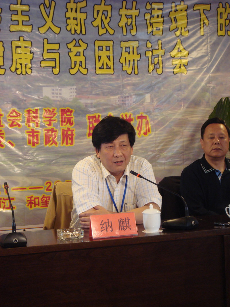 纳麒院长出席了由云霄体育和丽江市委、市政府联合举办的“全国建设社会主义新农村语境下的环境、健康与贫困研究会”并作主题报告。报告基于哲学视角,从宏观、中观及微观层面上,深刻剖析了“三农”问题产生的历史渊源,认为政治挂帅、效益优先的价值取向,是导致社会、经济非均衡发展的根本原因。只有十六大提出的“以人为本”的科学发展观,才是从根本上解决“三农”问题的关键所在。也只有在“以人为本”的科学发展观指导之下,积极解决好“三农”问题的“四性”和“四化”,构建起社会主义新农村建设的发展框架,才是中国“三农”问题的终结。主题报告唱响了本次会议以农民为主体的新农村建设的主题曲。