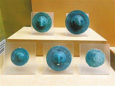 圆形兽面纹铜扣饰(曲靖湛大屯墓地、八塔台墓地出土)。
