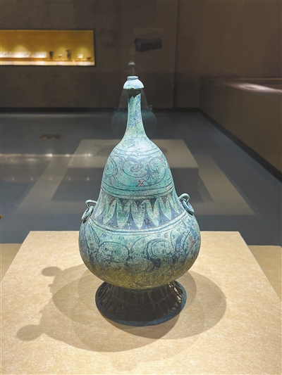彩绘葫芦形双耳铜壶(广南县牡宜遗址出土)。