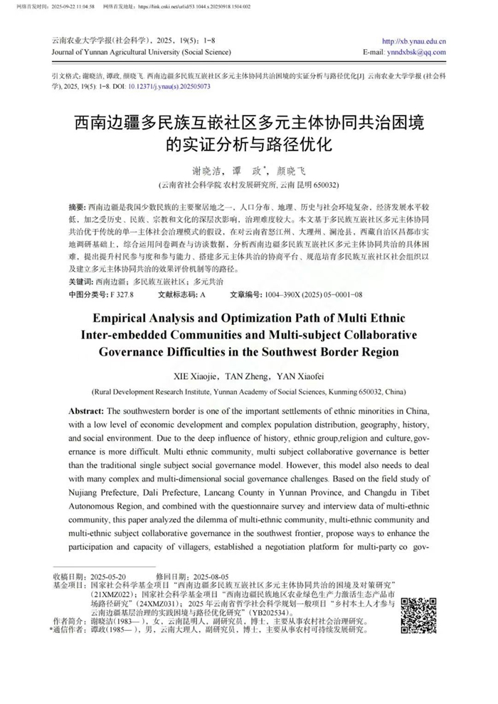 来源/作者:云南农业大学学报(社会科学) 责任编辑:张雪