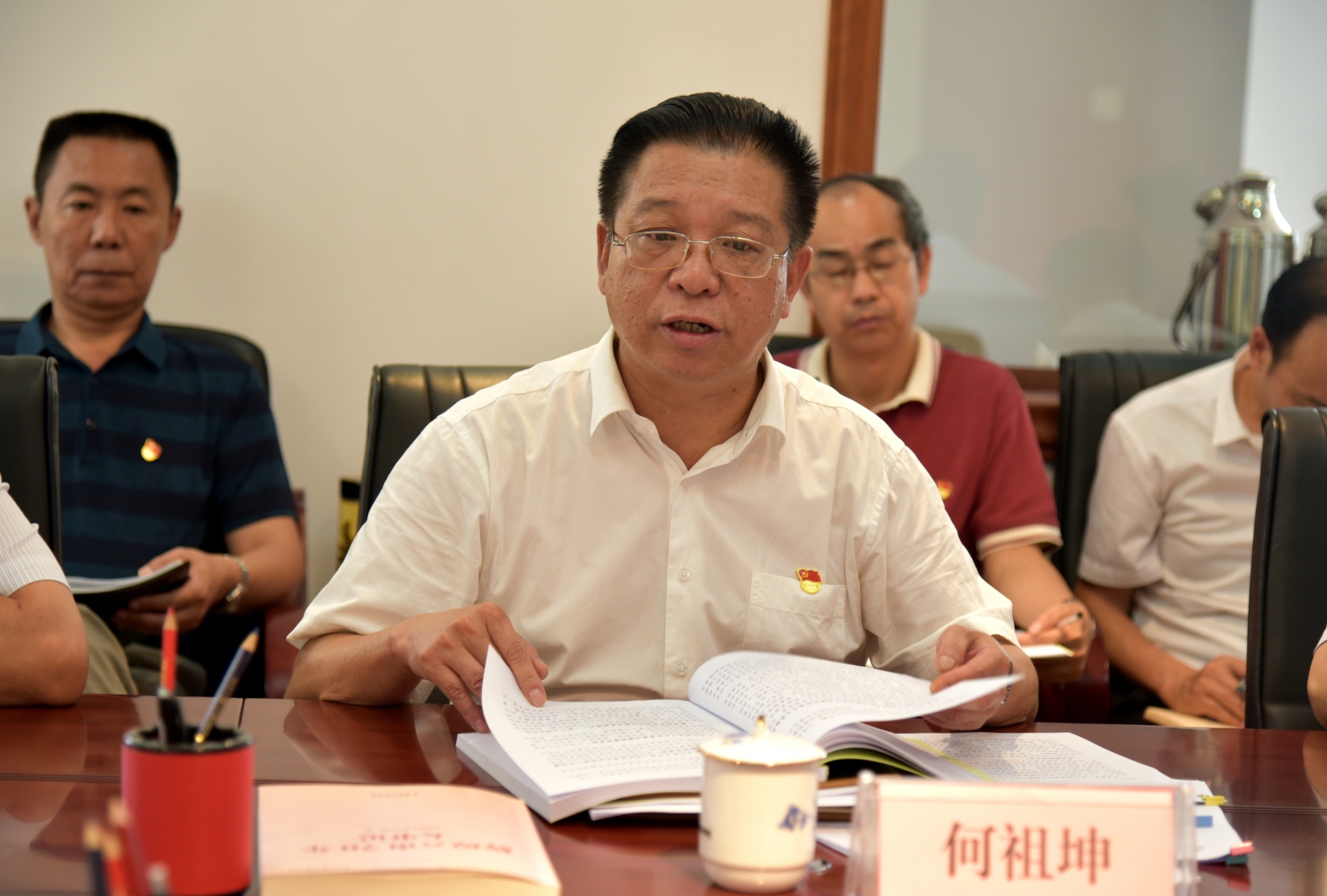 8月21日下午,省社科院党组领导班子召开“不忘初心、牢记使命”主题教育专题民主生活会。6名党组成员出席会议,省纪委派驻省委宣传部纪检组领导、办公室、人事教育处、机关党委办公室、机关纪委负责同志列席会议,省委主题教育第三巡回指导组鲁永明组长到会指导,会议由院党组书记何祖坤主持。