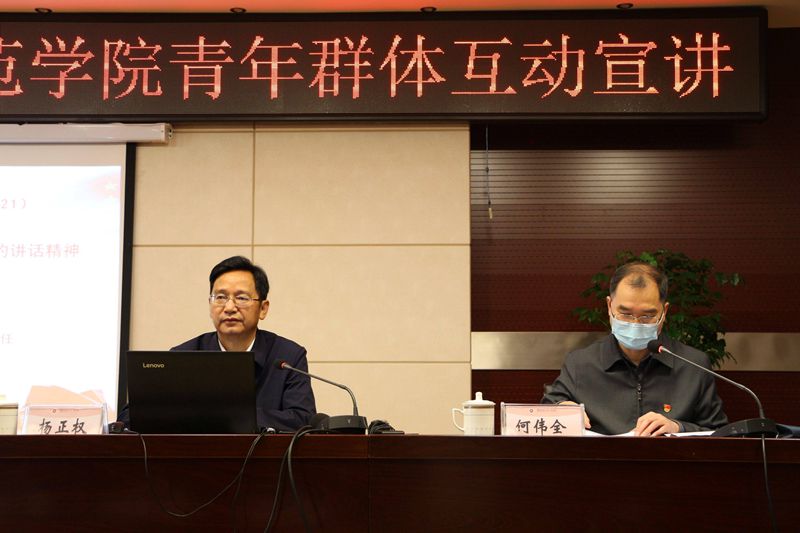 (记者 李薇薇)4月7日,楚雄师范学院教师进修综合楼第一报告厅内气氛热烈、座无虚席。党史学习教育省委宣讲团成员、省委宣传部副部长、省社科院党组书记、院长杨正权在这里,为师生代表作宣讲报告,与大家互动交流、答疑解惑。
