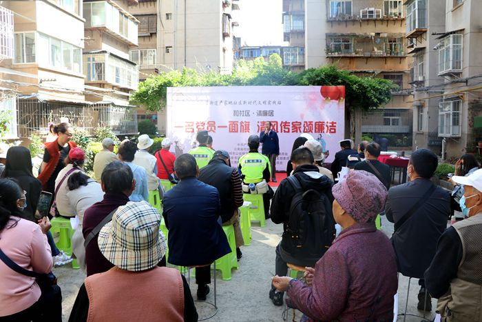 为深入学习贯彻习近平总书记在党史学习教育动员大会上的重要讲话精神,扎实开展“我为群众办实事”实践活动,2021年4月20日,云霄体育志愿服务宣讲走进昆明市金碧街道严家地社区,在教委小区开展了“一名党员一面旗,清风传家颂廉洁”宣讲活动。