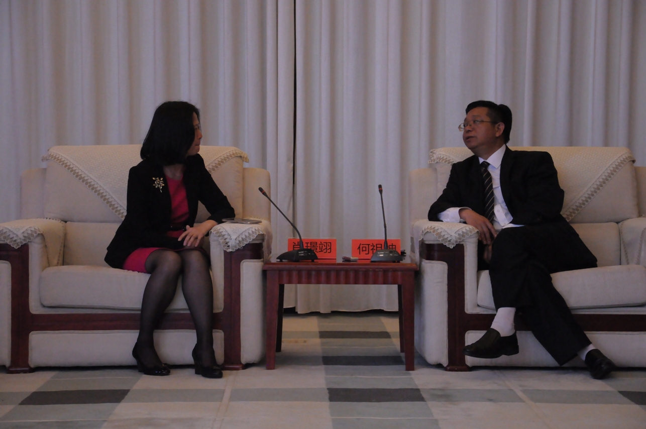何祖坤院长(右一)与肖璟翊女士(左一)进行座谈
