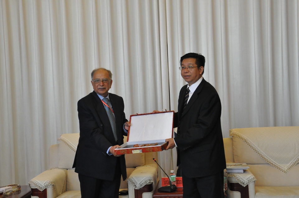 何祖坤院长(右一)会见桑达·纳斯·巴塔莱主席(左一)