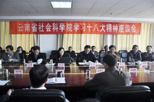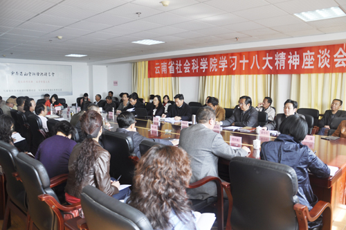 日前,云南省社科院举行学习党的十八大精神座谈会,与会专家围绕党的十八大报告中的亮点、重点问题进行讨论,并结合云南省省情,为“两强一堡”战略献计献策。